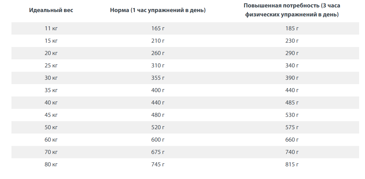 Свежая питьевая вода должна быть в свободном доступе. Если угощаете питомца лакомствами количество пищи должно быть уменьшено. Суточная норма является ориентировочной, может потребоваться индивидуальная корректировка количества корма.